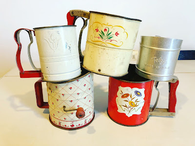 I started cleaning out my kitchen today for the #epkitchenupdateof2018. I'm trying to decide if I want to keep these sifters or sell them. #epthecollector #iloveantiquing